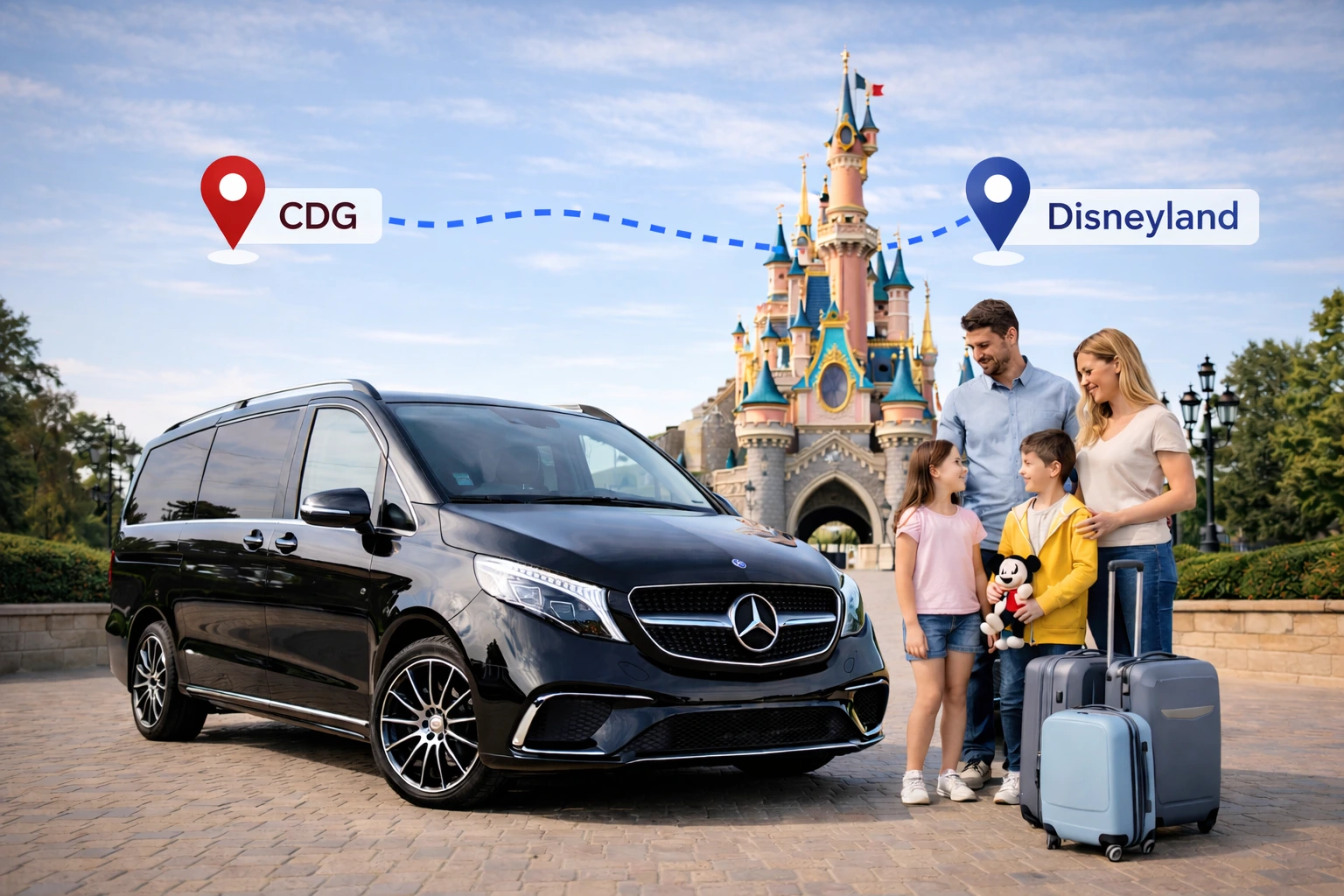 All CDG to Disneyland transfers operate on fixed pricing agreed at the time of booking. Prices do not change due to traffic, delays, or route conditions.